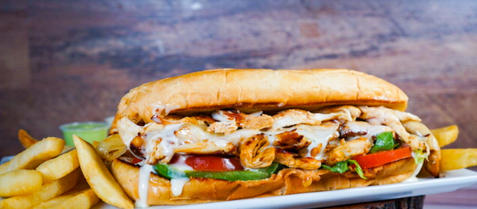 Chicken sandwich served with tomatoes, onions, green peppers, mushrooms, lettuce, cheese, & guapo's salsa.
