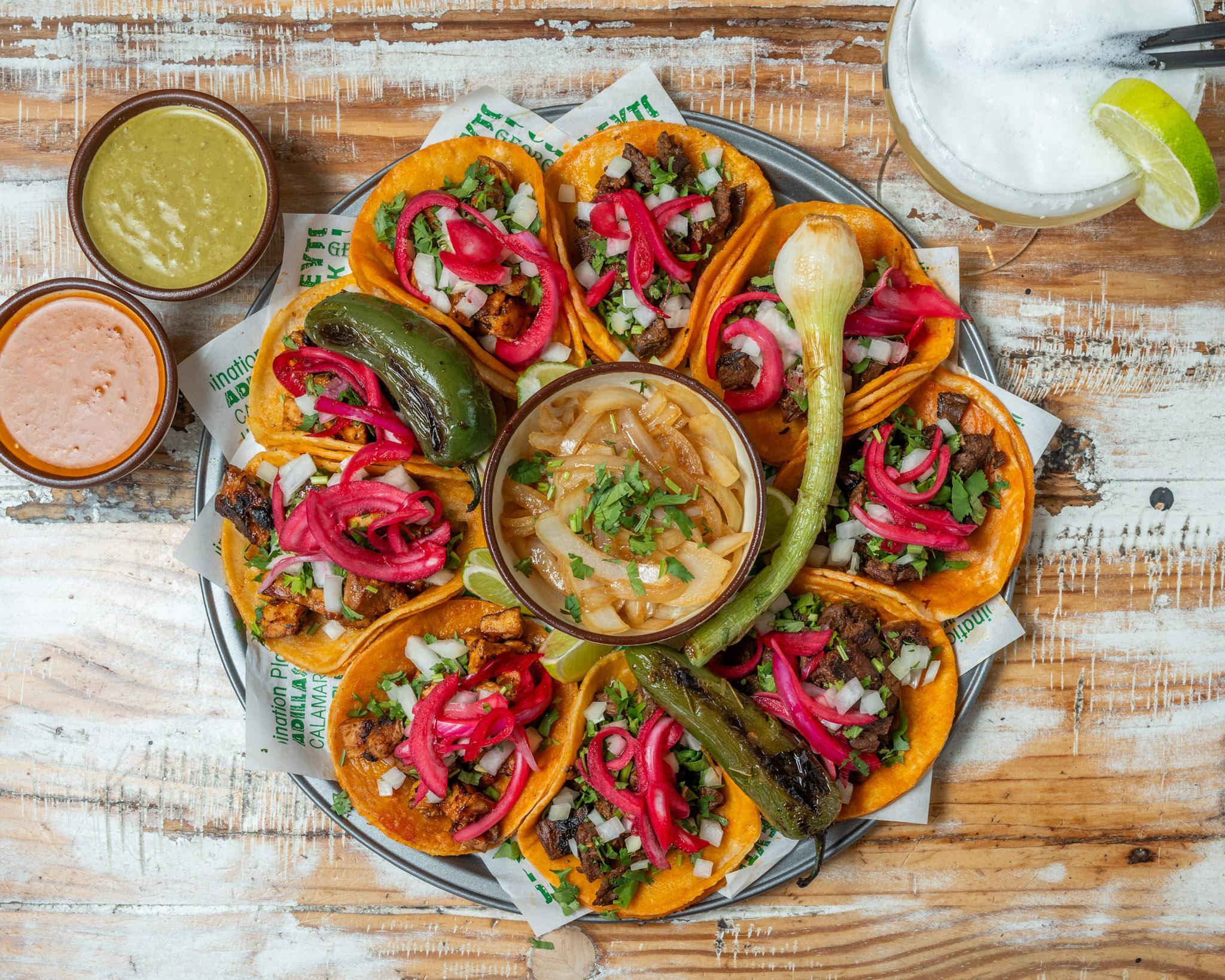 Build Your Own Taco Bar with Up to Four traditional Fillings. Topped with Pico de Gallo, Onion and Cilantro mix on Corn tortillas. Served with Mexican Rice and Charra beans. served with chips and salsa.