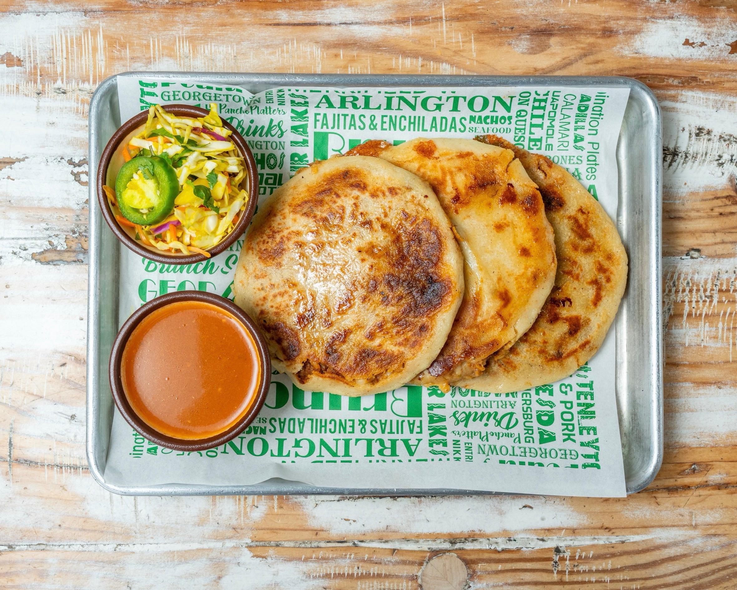 Hand-pressed salvadoran pupusas, griddled until golden and stuffed with your choice of filling. served with traditional curtido (tangy cabbage slaw) and our classic salsa roja (smooth, lightly spicy tomato-pepper sauce) on the side.