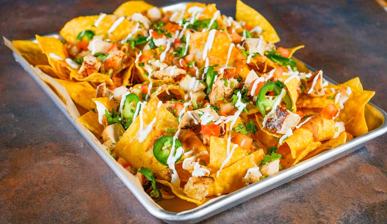 Crispy corn chips tortilla covered with melted cheese, your preference protein, served with guacamole, sour cream, and pico de gallo on the top.