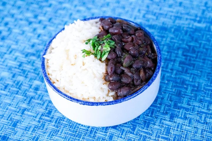 Half chicken served with rice & beans, your choice of side, and soft drink.